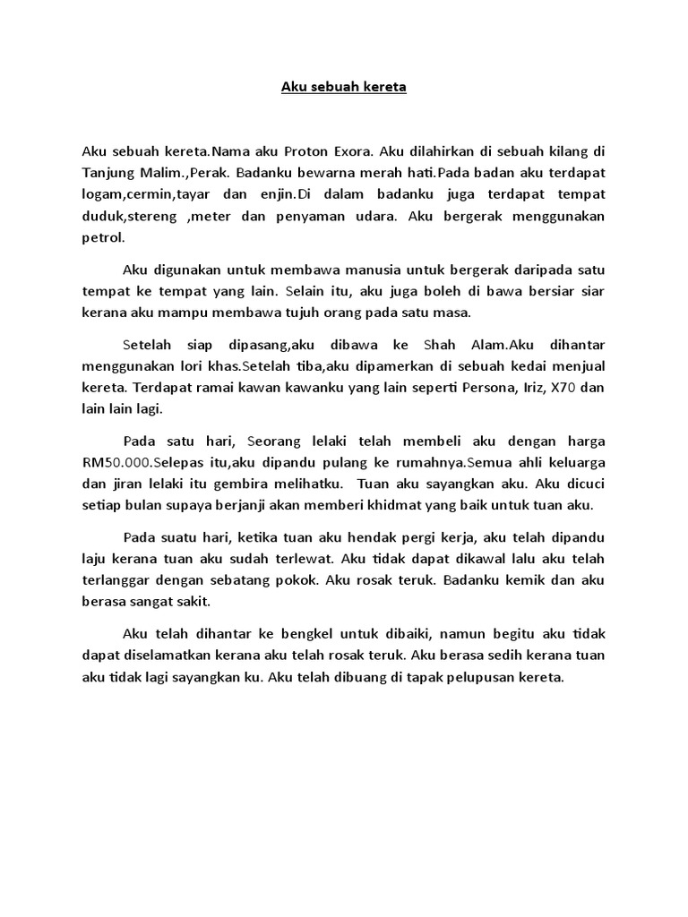 Contoh Karangan Sekolah Rendah Karangan Jenis Autobiografi Aku Sebuah Kereta